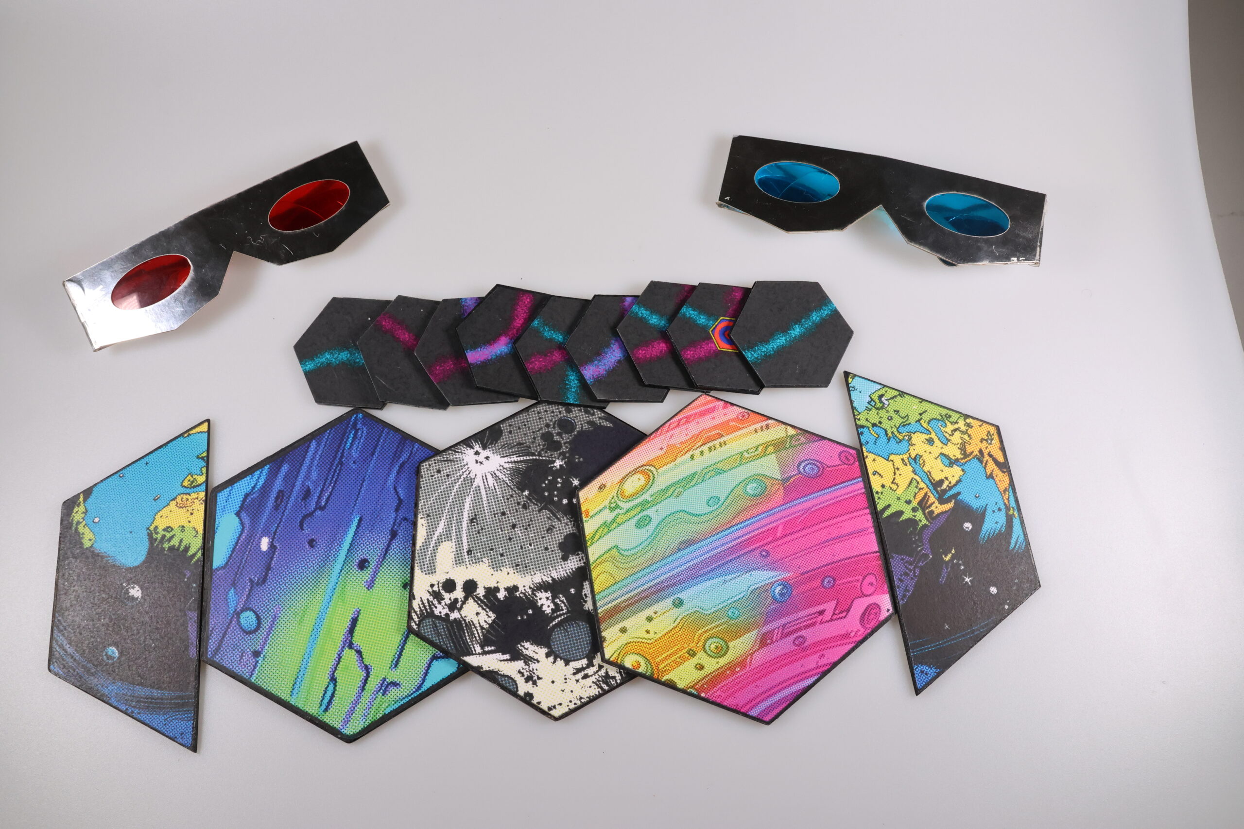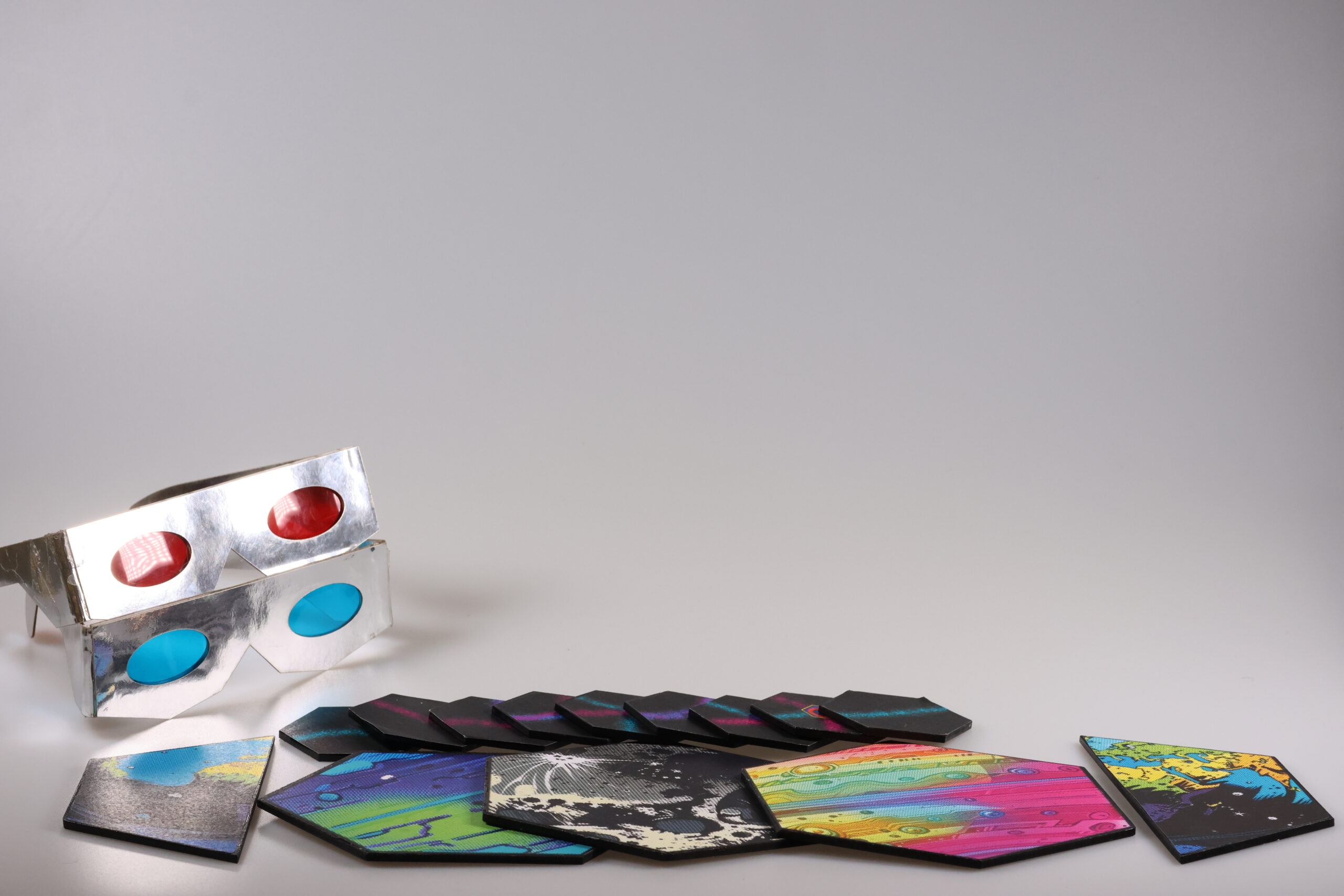 players to switch glasses. The game is also designed in a space-themed, minimalist