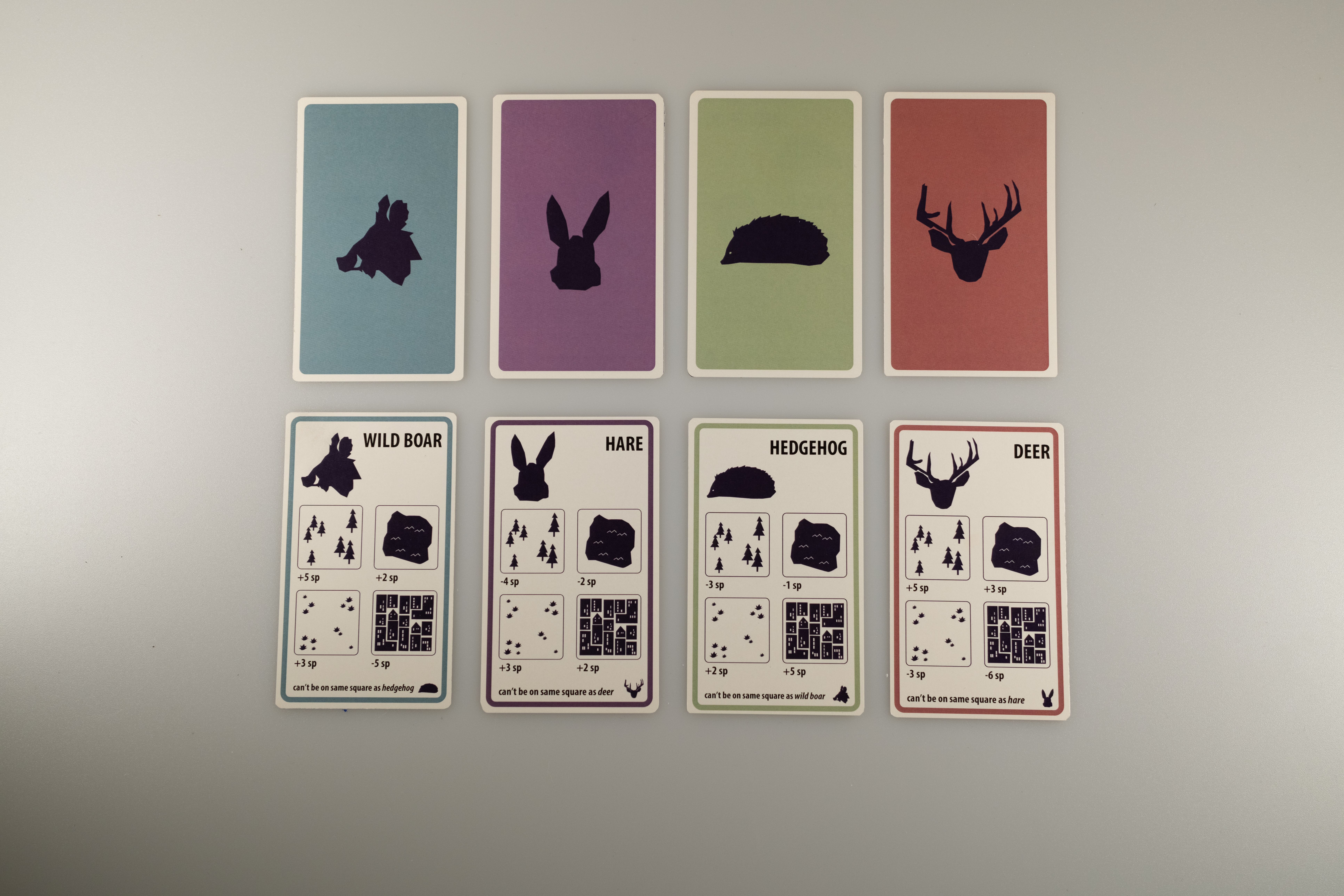 Each player takes on the role of a wild boar, hare, hedgehog, or deer, navigating the landscape while earning different amounts of points for moving across various tile types. The board consists of 36 tiles arranged in a square, with one side representing natural habitat and the other depicting urban development. At the end of each round, a set number of tiles flips from habitat to city, determined by a scale that players can influence through strategic movement. As urbanization spreads, the available space shrinks, making movement more difficult and requiring careful cooperation.