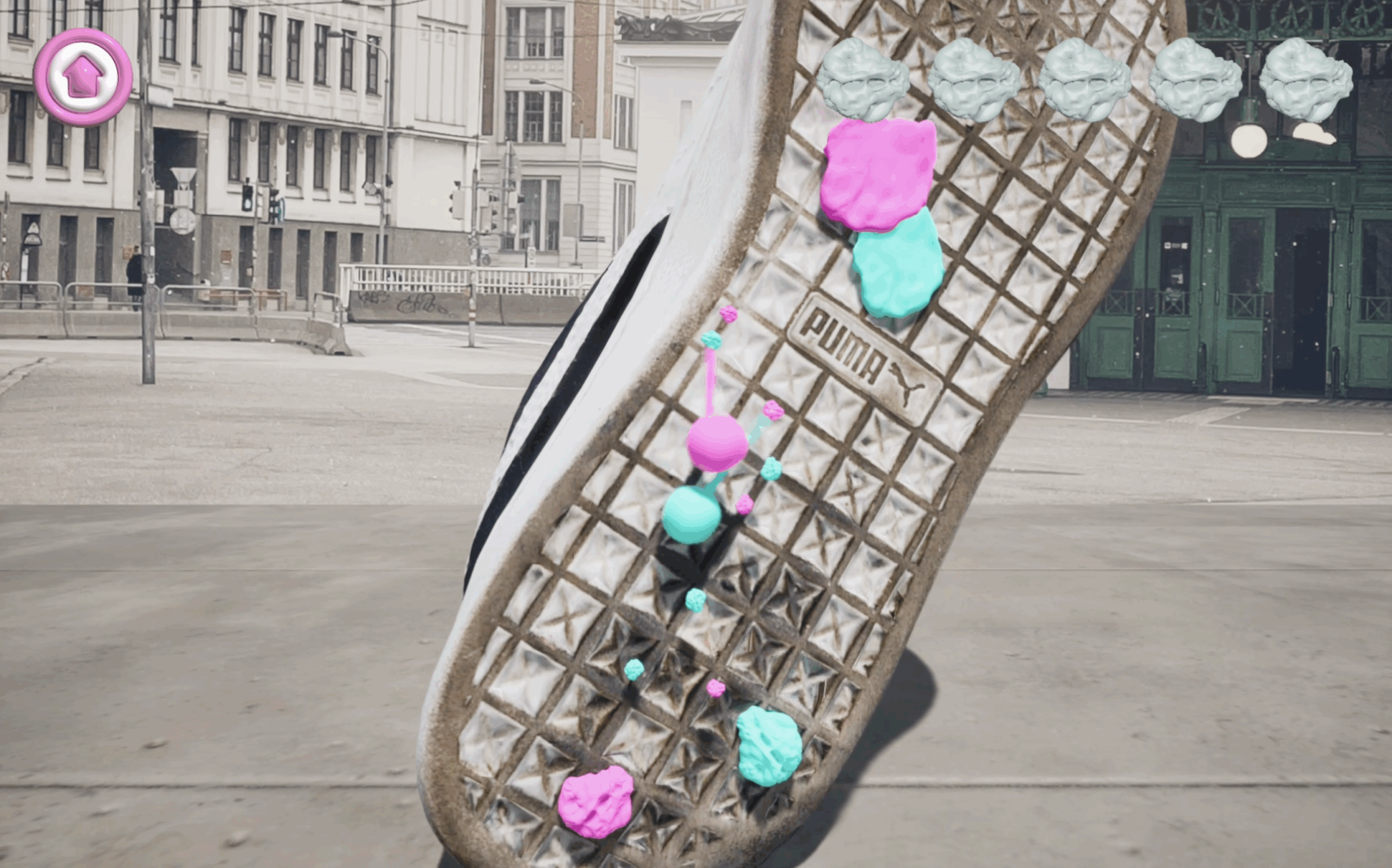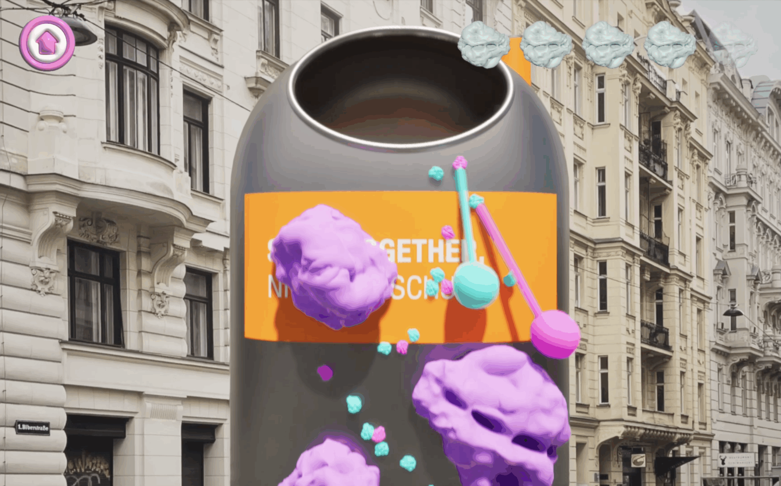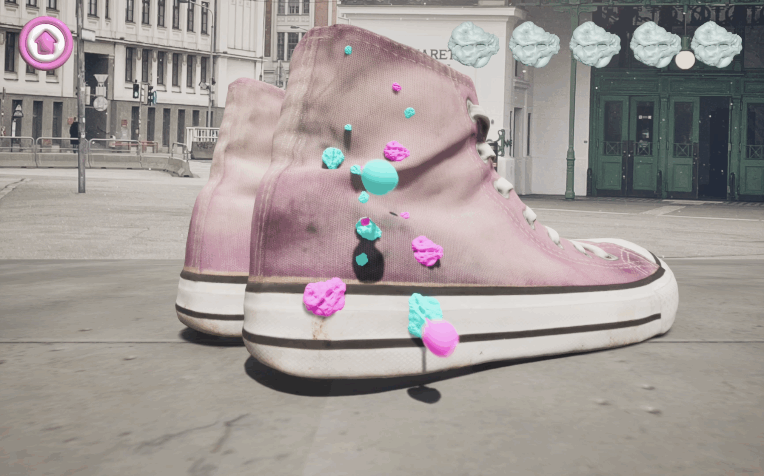 The game’s aim is to evoke fun in the players: Not only through their engagement with the physical difficulties of the game, but also through the opportunity to improve their skills as a team. The implemented sounds and visuals (typical Viennese environment and trash bin) and light-hearted topic contribute to the entertainment as well as the players cooperating as friends, not competing as opponents. The game’s environment as well as its coding were realised in Unreal Engine and Blender, its UI design was created with Adobe Illustrator.