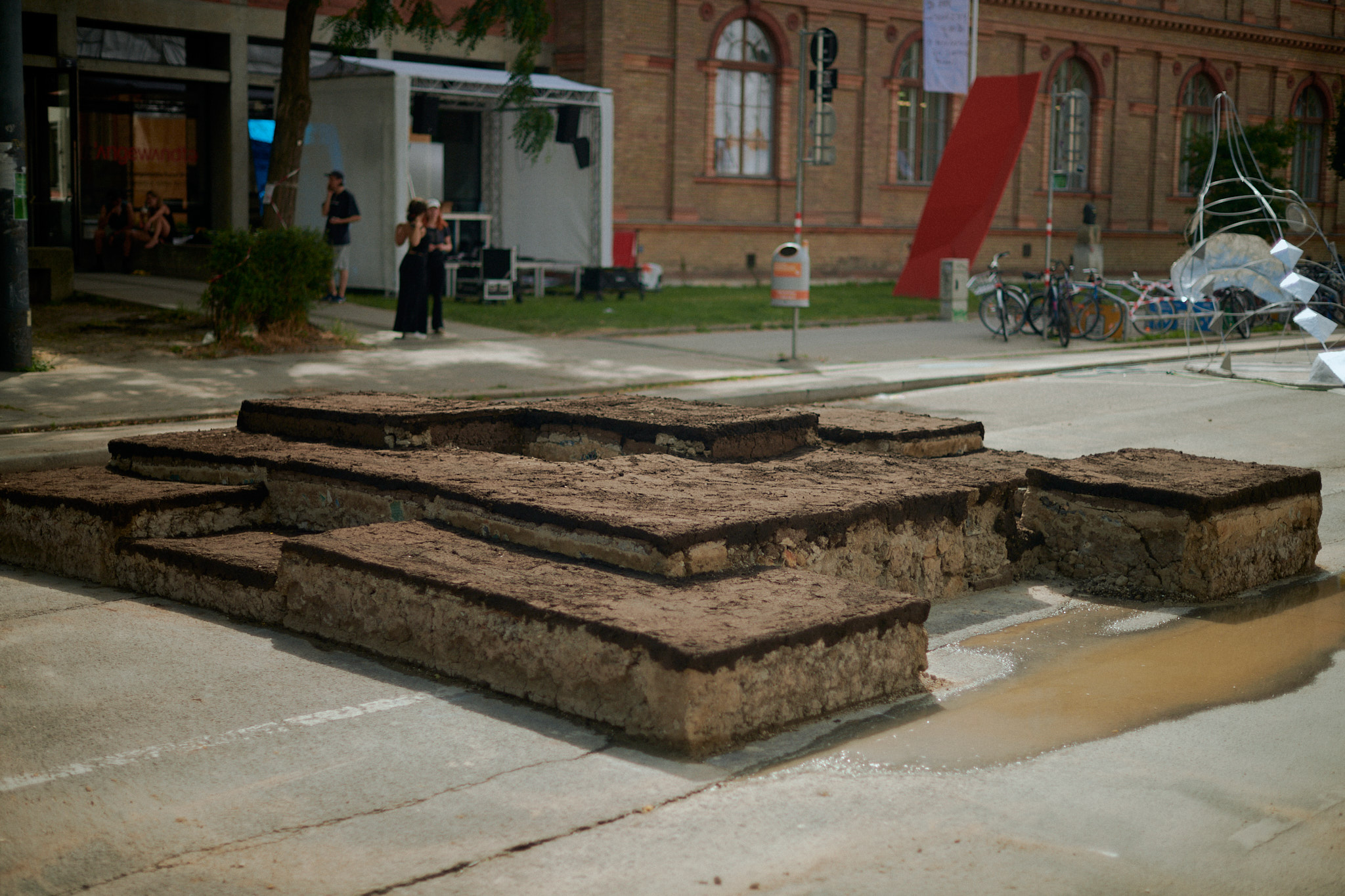 Its horizontal structure which gently disrupts the familiar landscape of Oskar-Kokoschka-Platz communicates this non hierarchical future by inviting visitors to remove their shoes and walk across its surface grounding and slowing down one’s experience of this festival.